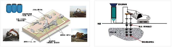 固化/穩(wěn)定化(Solidification/Stabilization),是比較成熟的固體廢物處置技術(shù)。該技術(shù)通過向污染土壤中添加固化/穩(wěn)定化藥劑,經(jīng)充分混合,使其與污染介質(zhì)、污染物發(fā)生物理化學(xué)作用(螯合、離子鍵和合、沉淀、吸附等),將污染土壤固封為結(jié)構(gòu)完整的具有低滲透性的固化體,或?qū)⑽廴疚镛D(zhuǎn)化成化學(xué)性質(zhì)不活潑形態(tài),降低污染物在環(huán)境中的遷移和擴(kuò)散。